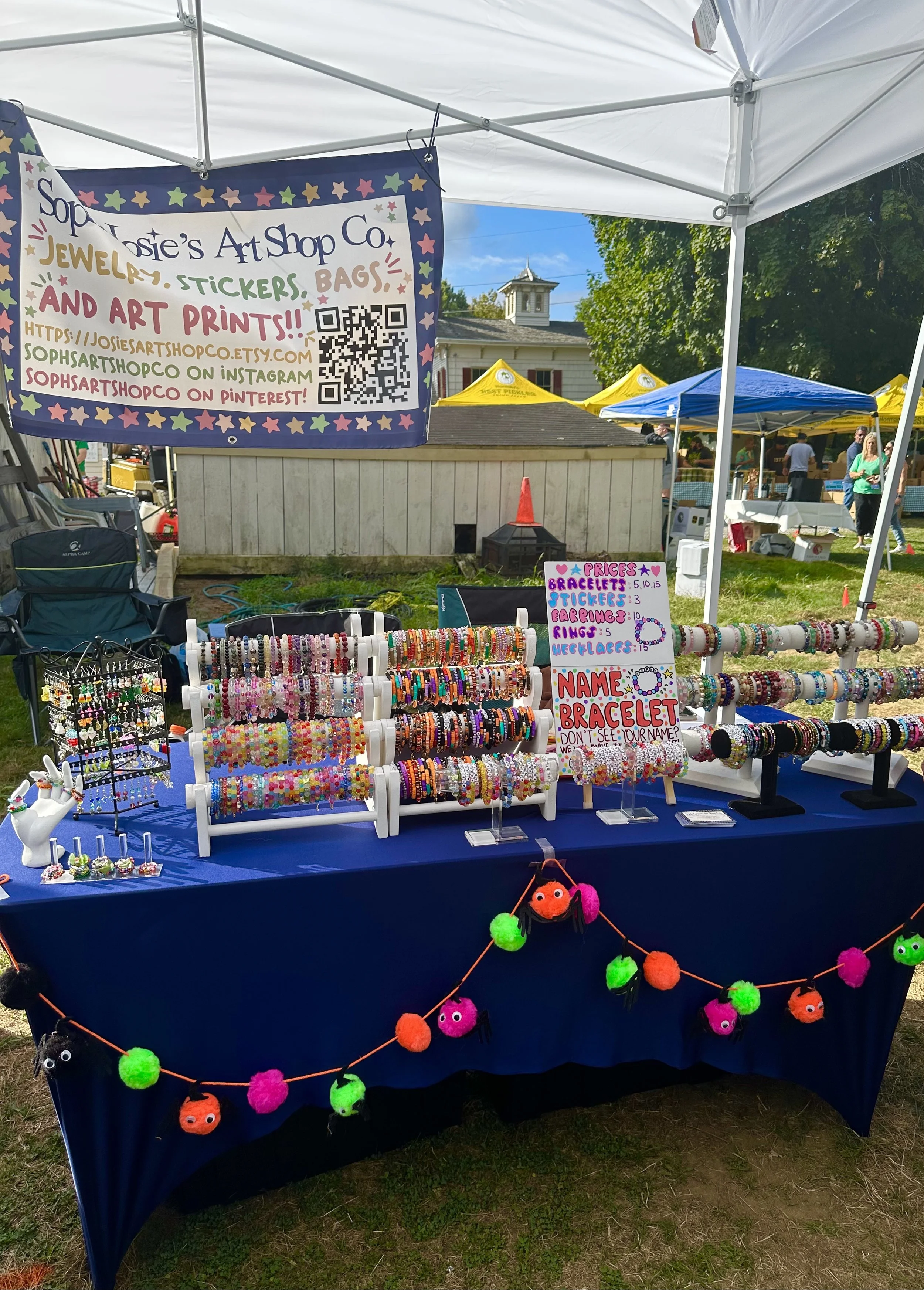 My name is Sophia and I am the owner of Sophia’s Art Shop! I am an college art student. I sell my stickers and jewelry in in-person fairs (like the LI Pickle Festival) and on Etsy! I am now expanding to birthday parties, specifically for paint and bracelet making.